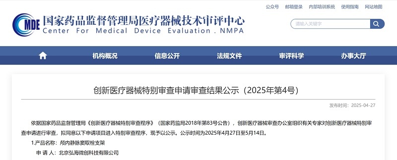 近日,君創(chuàng)Family企業(yè)北京弘海微創(chuàng)科技有限公司(以下簡稱“弘海微創(chuàng)”)自主研發(fā)的腦靜脈介入治療產(chǎn)品顱內(nèi)靜脈竇取栓支架,已正式進入國家創(chuàng)新醫(yī)療器械特別審批程序(綠色通道)。這既是對弘海微創(chuàng)團隊技術(shù)實力與臨床價值的權(quán)威認可,也標志著中國腦靜脈疾病治療邁入全新階段。